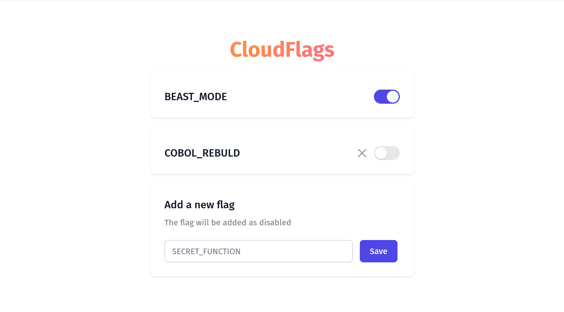 A hyper simplistic feature flag service focused on ease of use and speed. The project is designed to run as a CloudFlare Worker and uses CloudFlare Workers KV for storage. This allows it to run fully on the edge, globally distributed to be closer to the user. There is a simple API for other apps to query one or more feature flags and an easy to use UI for managing the flags. The project is fully built on top of the Hono framework using JSX for templating yet not shipping any JavaScript to the client.